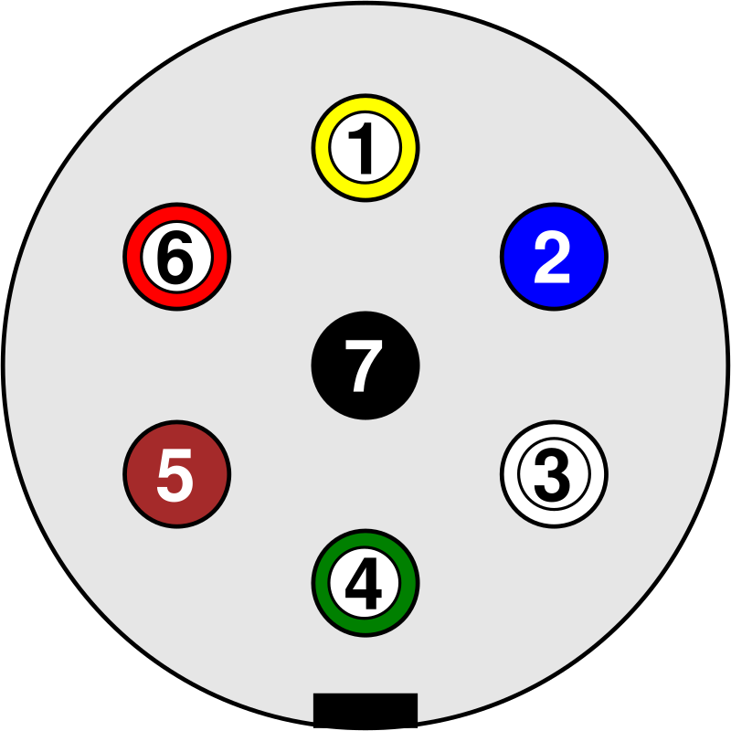 7-pinový konektor (ISO 1724) na ťažnom vozidle označenie zásuviek 7-pinového